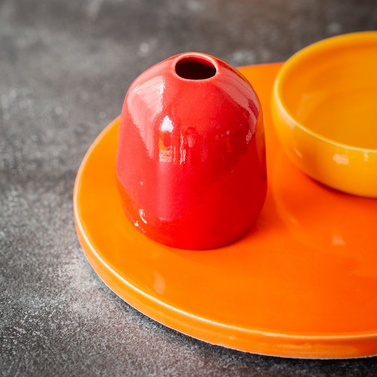 Die Feueropal-Glasur erzeugt eine sehr schöne, glasartige, durchscheinende Oberfläche in einem kräftigen, hellen Pastellton.