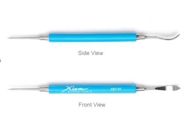 Ein Werkzeug aus gehärtetem Edelstahl zum Reinigen und präzisen Dekorieren von Ton.