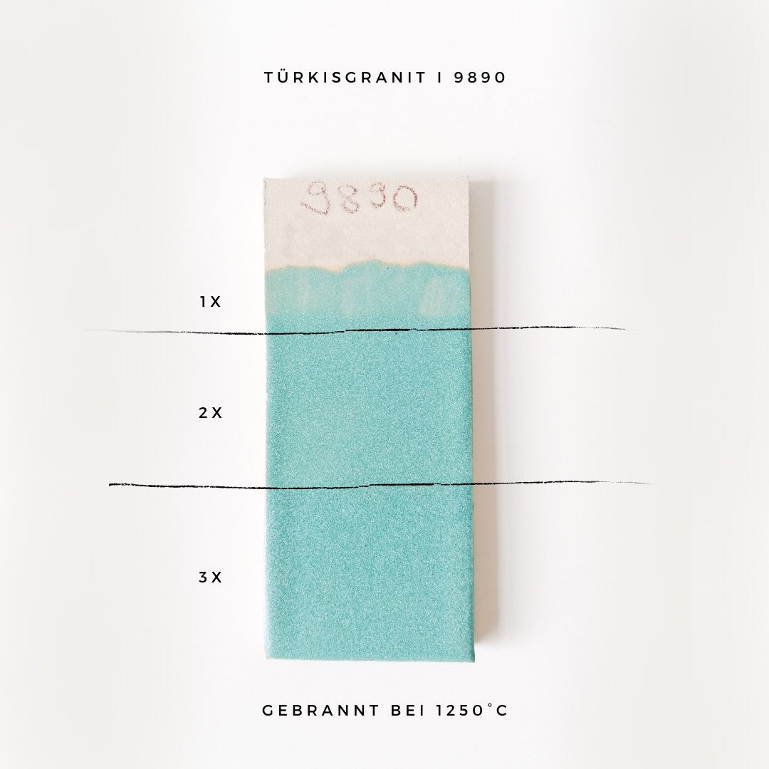 1250°C: silky matte turquoise with light effects;