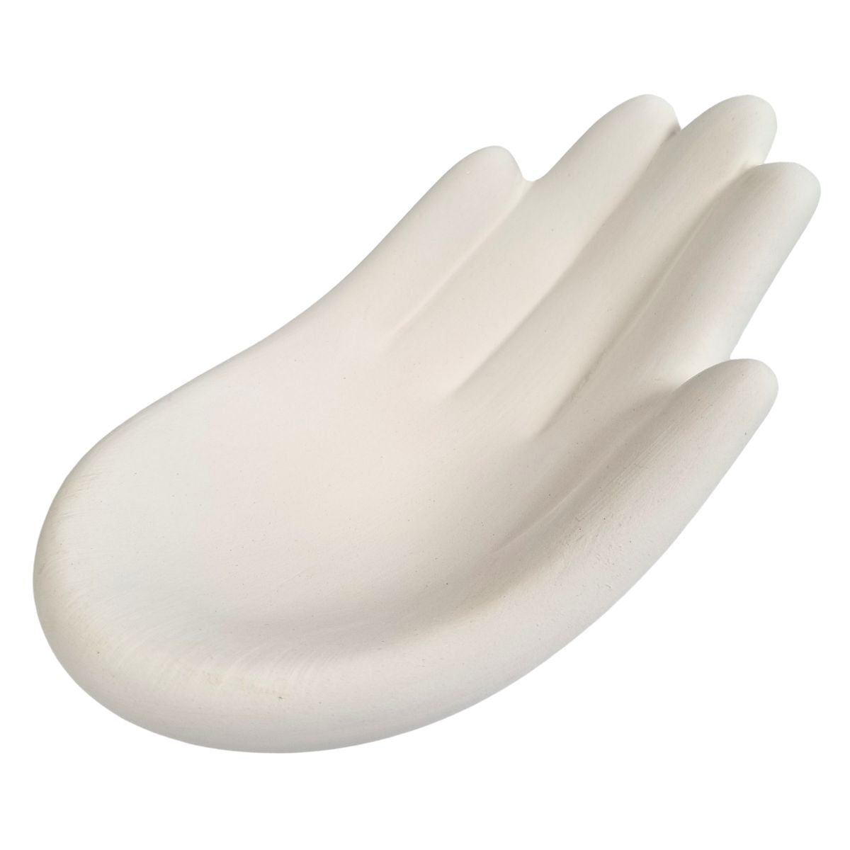 A hand-shaped biscuit vessel, ready for decoration and a second firing.